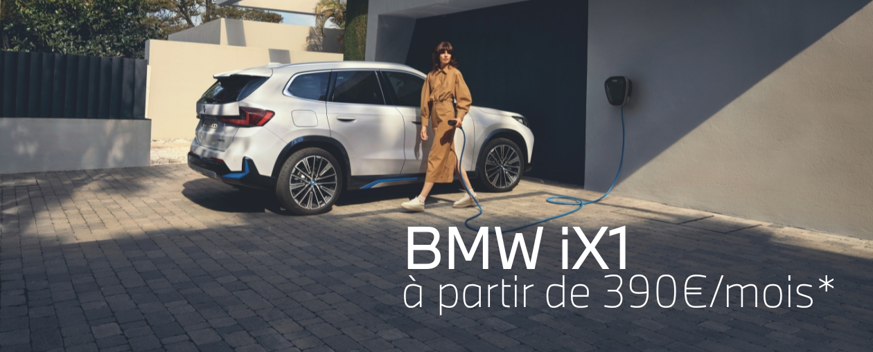Chez BMW Groupe BMS, nous vous proposons de découvrir le BMW iX1, un SUV compact premium 100 % électrique qui conjugue design, technologies avancées et plaisir de conduite. Dans le cadre d’une Location Longue Durée de 48 mois, le BMW iX1 est accessible à partir de 390 €/mois, avec un premier loyer majoré de 390 €, après déduction de l’opération Coup de pouce de 3 200 €*.